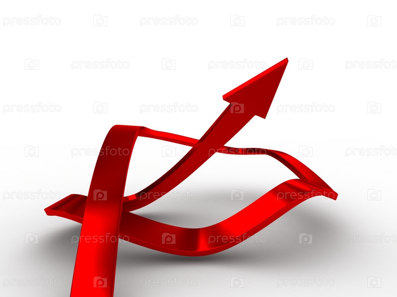 Извилистая красная стрелка на белом фоне с тенью