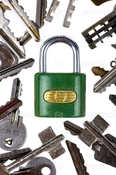 Замок с ключами на белом фоне