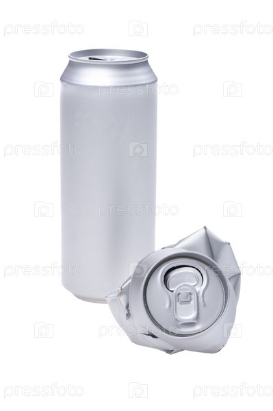 Смятая жестяная банка на белом фоне