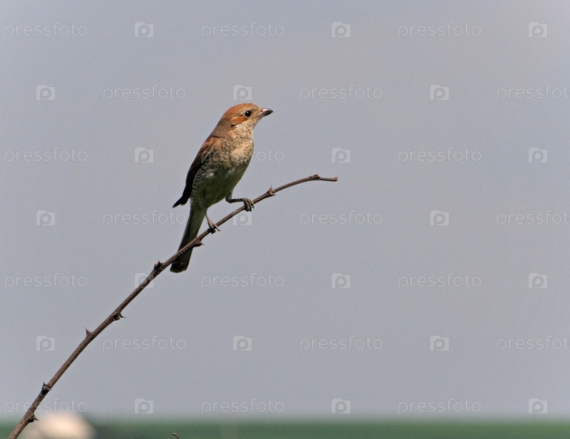 Самка сорокопута-жулана сидит на ветке