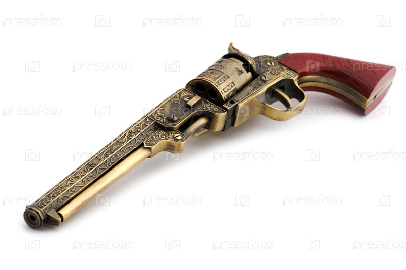 Зажигалка в виде револьвера на белом фоне