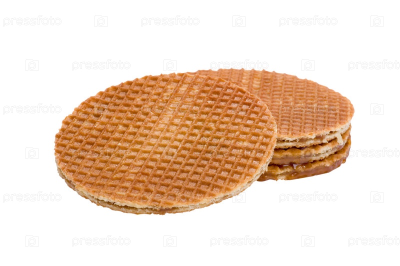 вафли с карамелью на белом фоне