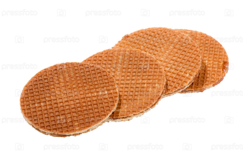 вафли с карамелью на белом фоне