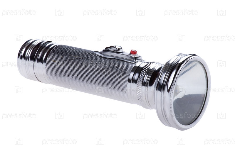 Металлический фонарик на белом фоне