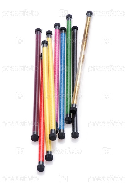 Трубки с цветными песком на белом фоне