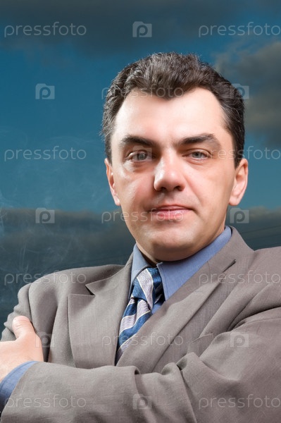 Мужчина в костюме на фоне неба