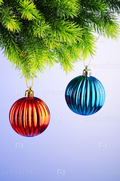 Еловая ветка, украшенная шарами