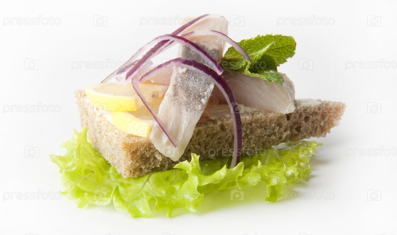 Бутерброд с сельдью, лимоном и зеленью