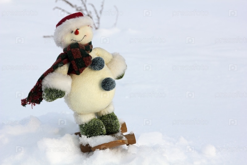 Снеговик на сноуборде на снегу