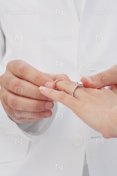 Жених и невеста обмениваются кольцами