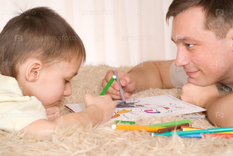 Отец и сын рисуют фломастерами