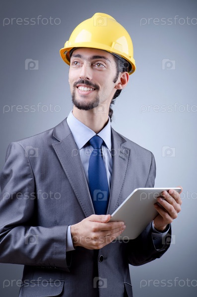 Молодой архитектор с планшетным компьютером