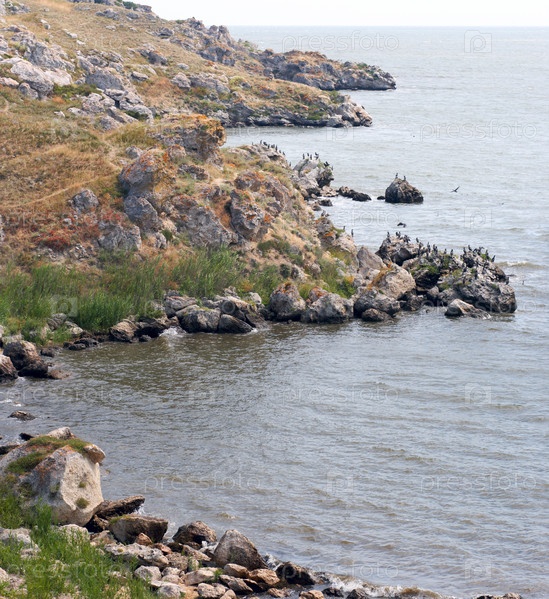 Бакланы на мысе Казантип, Крым, Украина