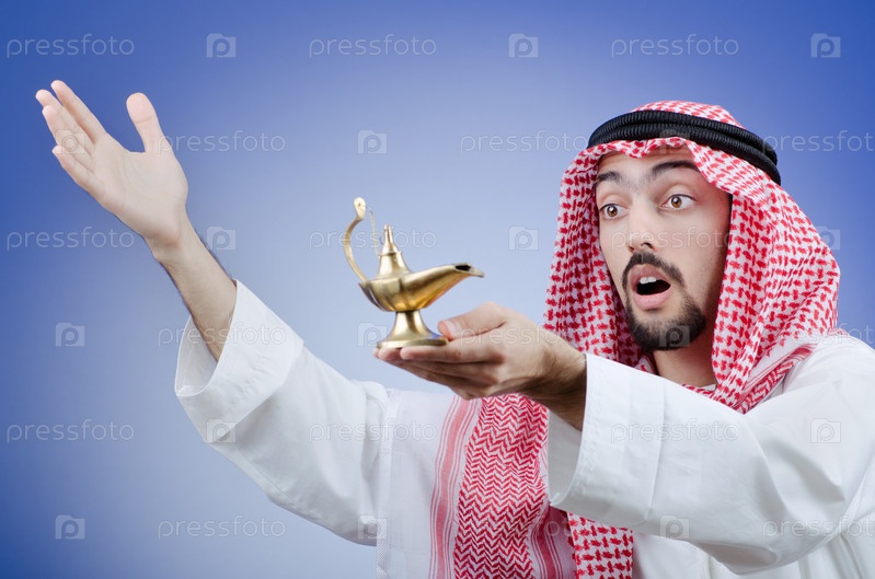 Араб в национальной одежде с лампой