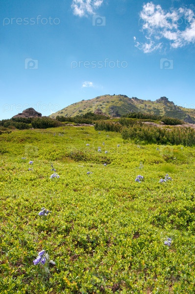 Цветущие колокольчики в горах летом