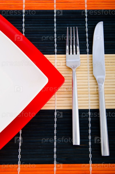 Сервировка стола на бамбуковой салфетке