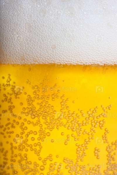 Светлое пиво с белой пеной крупным планом