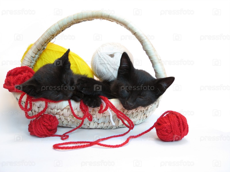 Черные котята в корзиночке с рукоделием