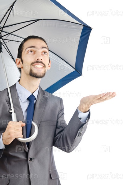 Человек с зонтиком на белом фоне