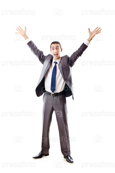 Молодой предприниматель на белом фоне