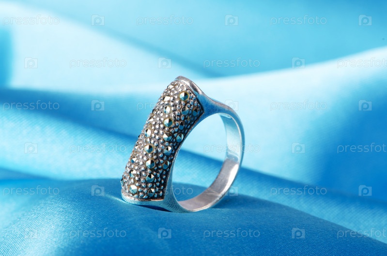 Драгоценное кольцо на голубой фоне