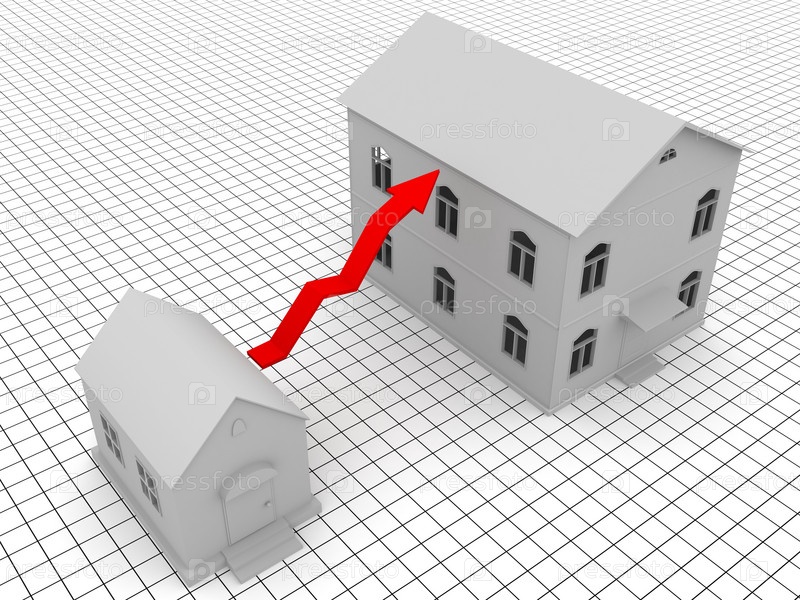 Красная стрелка, поднимающаяся от маленького дома к большому