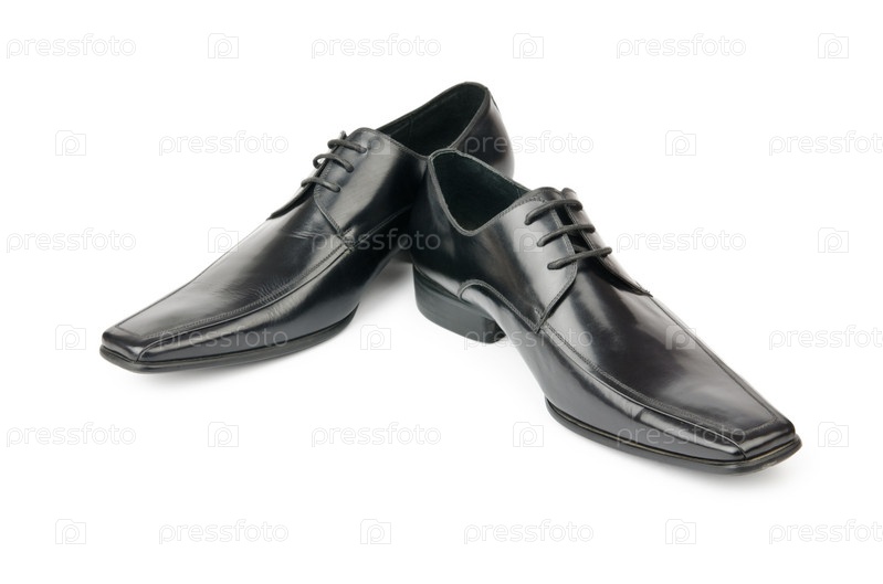Черные мужские туфли на белом фоне