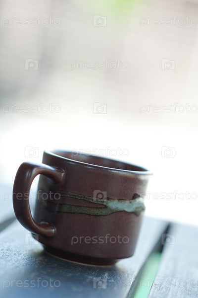 Коричневая кружка на столе крупным планом