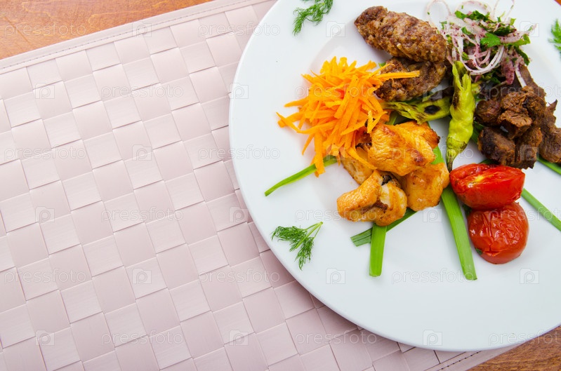 Тарелка с шашлыками и овощами