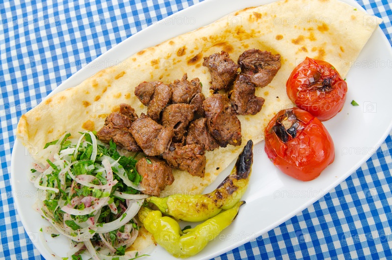 Тарелка с шашлыками и овощами