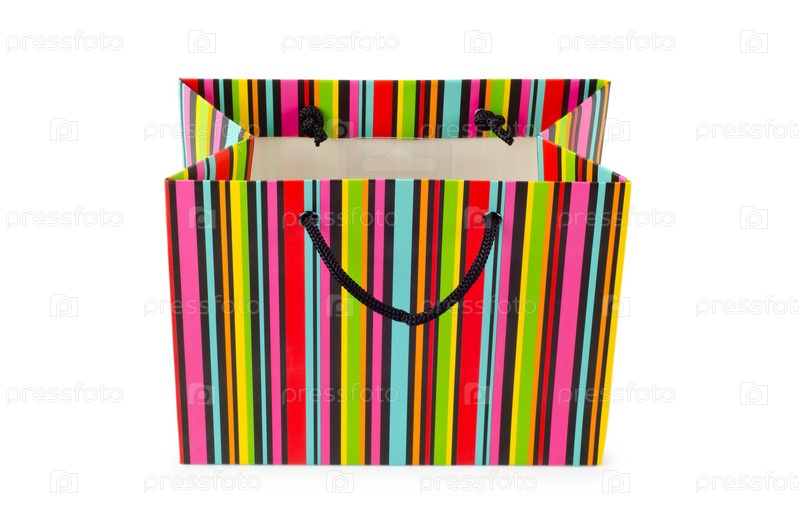 Концепция торговли в виде бумажного пакета на белом фоне