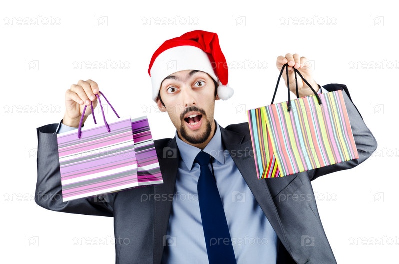Концепция рождественских покупок - бумажный пакет