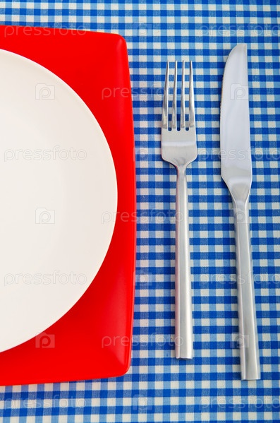 Столовые приборы на клетчатой скатерти