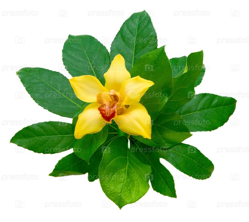 Желтая орхидея (Cymbidium) на белом фоне в крупном плане