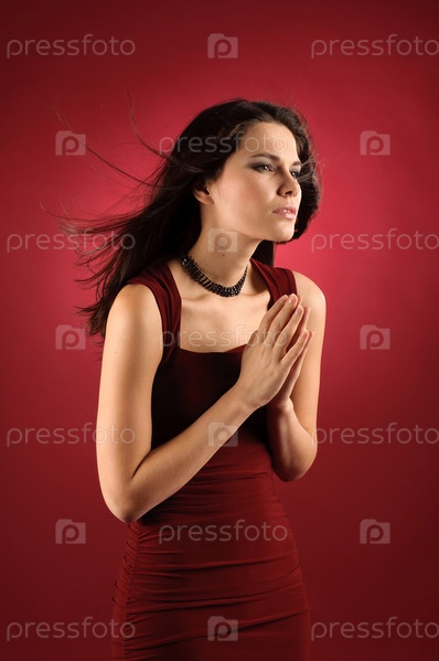 Девушка с развевающимися волосами молится