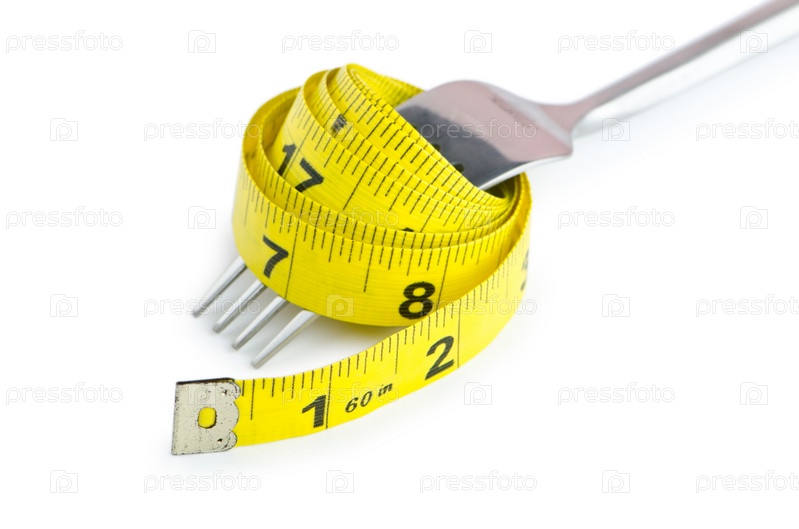 Вилка и сантиметр на белом фоне