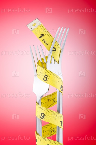 Две вилки и сантиметр на красном фоне