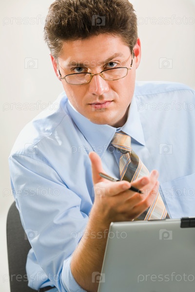Портрет уверенного бизнесмена с очками, смотрящего на камеру