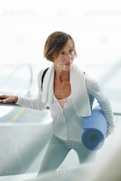 Женщина с ковриком для йоги