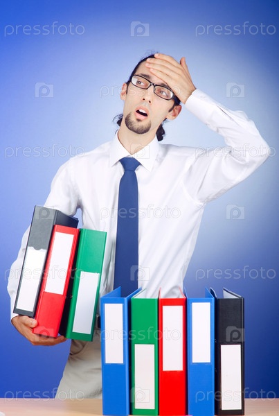 Предприниматель с множеством офисных папок
