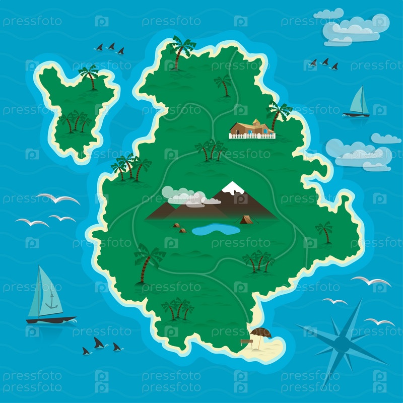 Тропический остров в море. Вектор
