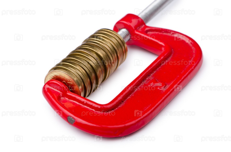 Зажимом с монетами на белом фоне