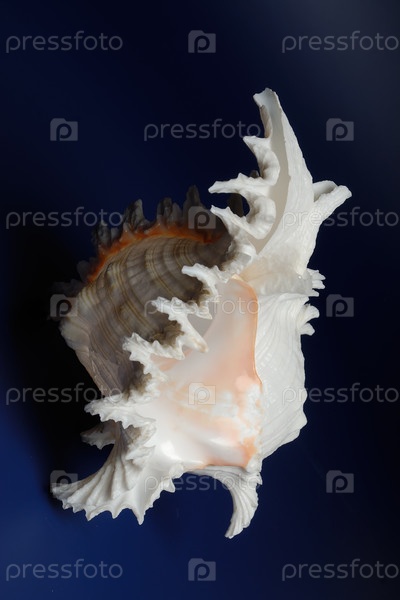 Морская раковина на синем фоне