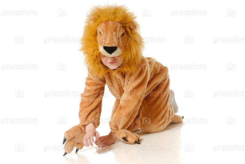 Ребенок в костюме тигренка на белом фоне