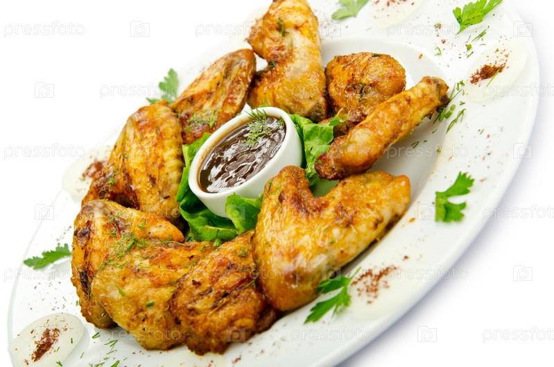 Жареные куриные крылышки на тарелке
