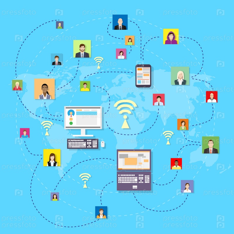 Социальные медиа мир коммуникации карта концепции сети Интернет