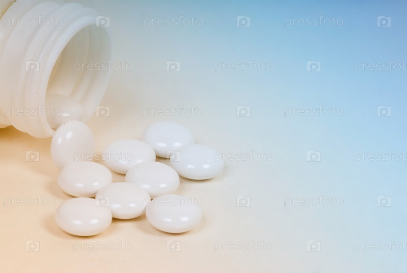 Белые таблетки крупным планом на белом фоне