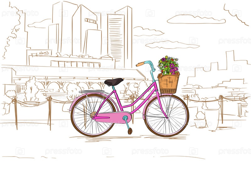 Розовый ретро велосипед с цветами