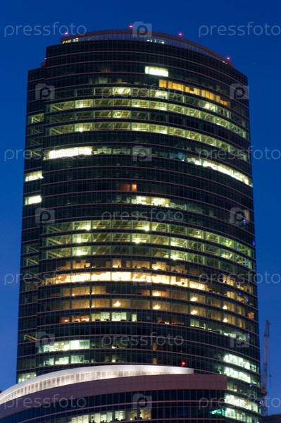 Современный небоскреб в сумерках, Москва