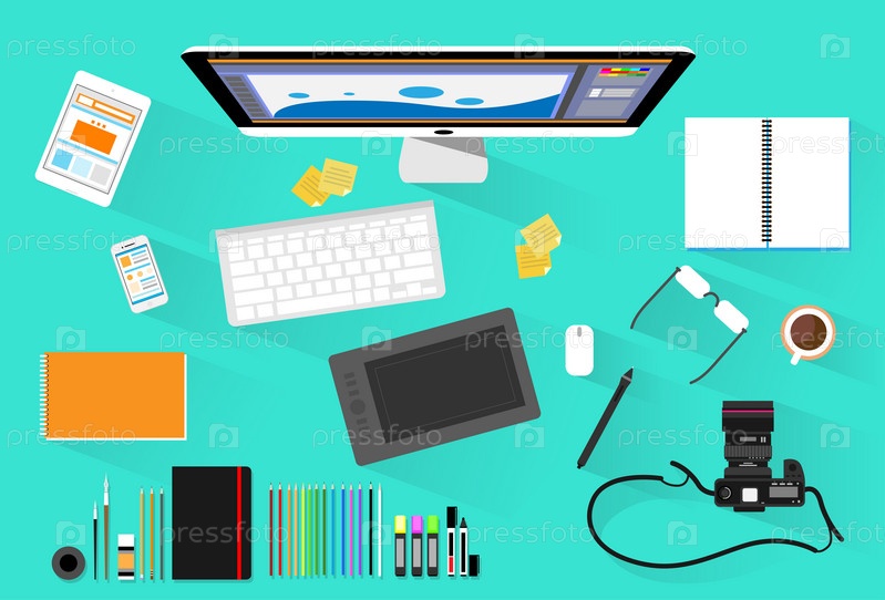 Графический дизайнер-фотограф на рабочем месте